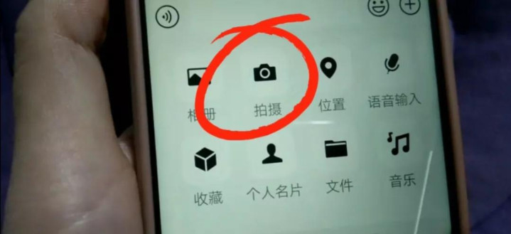 那如何操作呢?我们只需要打开微信,打开与好友的聊天页面,然后看下方这里有一个加号,我们把加号打开,然后在这里我们点开下方的“拍摄”,来给这些文字来拍一张照片。