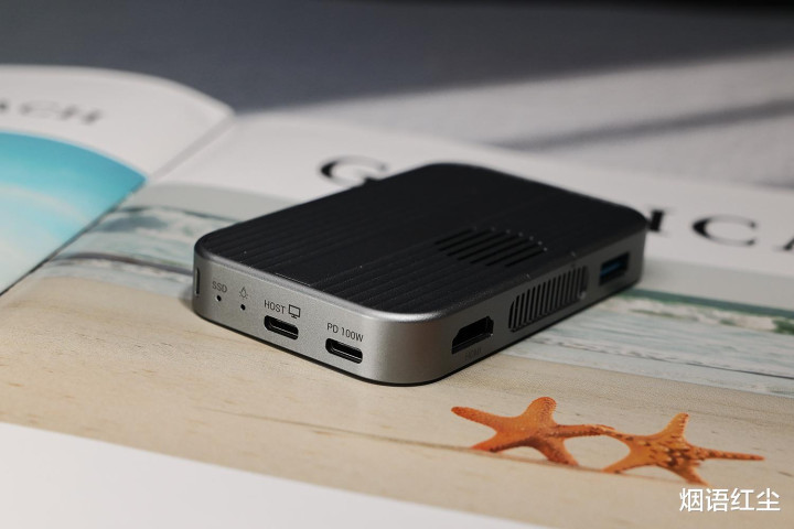 在实际实用时,阿卡西斯磁吸硬盘盒的小巧体积与磁吸特性,使其成为理想的随身资料库。重要文档、演示文稿、客户资料可安全存储在硬盘中。100W PD快充还能在办公时同时为笔记本和手机供电,一机多用,USB-A、USB-C接口还可以连接各种外设。值得一提的是,阿卡西斯磁吸硬盘盒还配置了HDMI接口,支持4K/60Hz分辨率,外出携带笔记本电脑,办公投影更加方便。